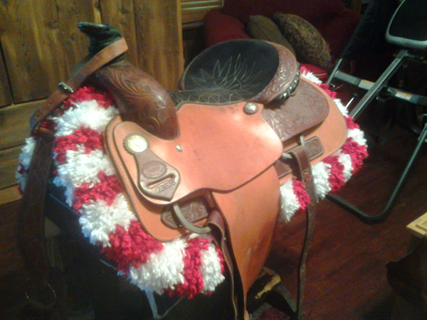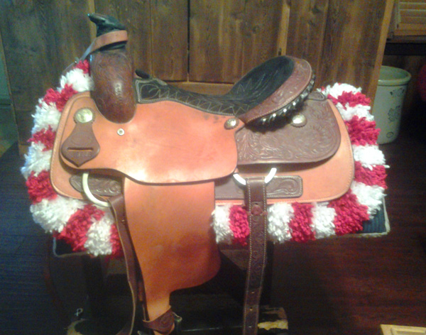 | Traditional style, Non-traditonal Colors The stripes on these pads are much narrower than on the others. Inspired by the Redbud trees blooming in Oklahoma this spring, I have two variations available. | ||||